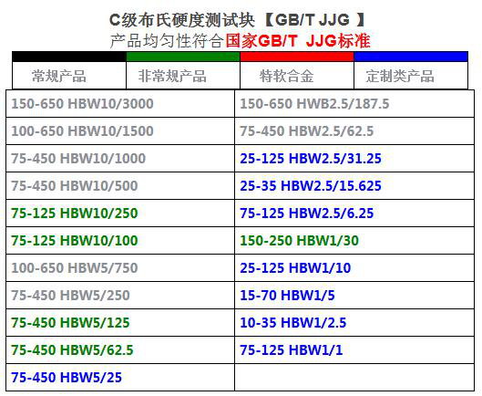 標準C級布氏硬度塊